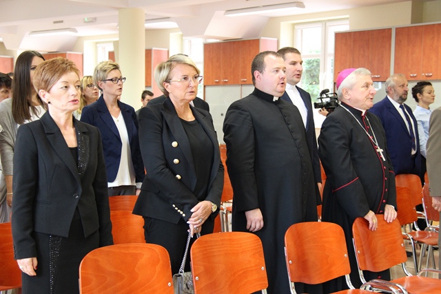 Po Mszy św. wszyscy udali się do budynku Centrum Józefologicznego, w którym mieści się szkoła. Symbolicznego przecięcia wstęgi dokonali prezydent Kalisza Grzegorz Sapiński i uczeń Mikołaj Wawrzyniak.W auli szkoły osobom, które przyczyniły się do powstania Zespołu Szkół Technicznych Diecezji Kaliskiej podziękował dyrektor ks. Adam Kraska. Młodzieży życzył, aby dobrze wykorzystali czas rozwoju swojej młodzieńczej pasji. W imieniu uczniów przemówił Adam Larnet, który podziękował wszystkim, którzy w jakikolwiek sposób przyczynili się do realizacji tego przedsięwzięcia, a w szczególności biskupowi kaliskiemu Edwardowi Janiakowi.Radość z nowo powstałej szkoły wyraził prezydent Kalisza Grzegorz Sapiński, który podkreślał, że placówka jest szansą dla młodych, aby w przyszłości realizowali swoją karierę w regionie.W swoim przemówieniu bp Edward Janiak wyjawił, że utworzenie takiej szkoły było jego marzeniem. Zachęcał uczniów, aby w trakcie nauki rozwijali swoje talenty. – Ten czas na kształcenie jest darem. Nie zmarnujcie tego czasu, ponieważ to, z czego tutaj skorzystacie będzie owocować w przyszłości – powiedział ordynariusz diecezji kaliskiej. Zebrani w nowej szkole mieli okazję obejrzeć program artystyczny w wykonaniu uczniów.