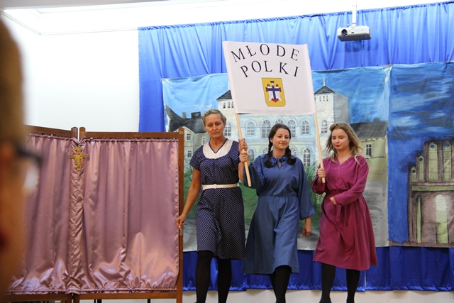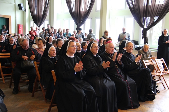Przed Mszą św. w auli VI LO w Poznaniu odbyło się przedstawienie o s. Marii Włodzimirze Wojtczak przygotowane według scenariusza Arlety Drzewieckiej przez nauczycieli i pracowników Wspólnoty św. Elżbiety w Śremie pod kierunkiem s. Damiany Rozalii Cykulskiej.