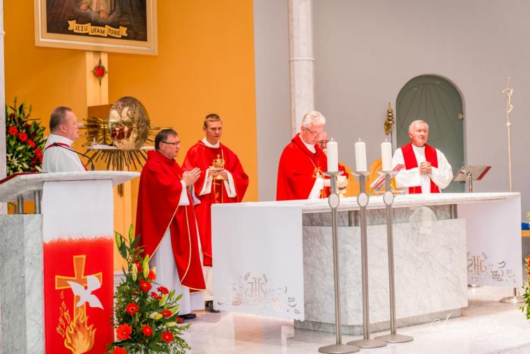 Mszę św. pod przewodnictwem bp Lechowicza koncelebrowali: ks. Bogusław Burgat, wikariusz generalny Towarzystwa Chrystusowego, ks. Tadeusz Przybylak, prowincjał na teren Australii i Nowej Zelandii, ks. Kamil Żyłczyński, rektor Sanktuarium i ks. Wiesław Słowik, jezuita