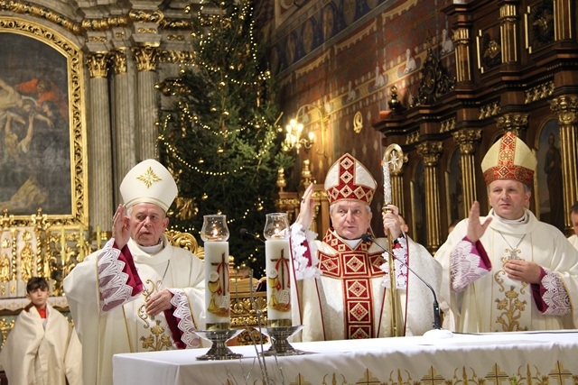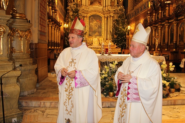 Po Mszy św. biskupi przełamali się opłatkiem z wiernymi. Uroczystość uświetniła orkiestra „Gród nad Prosną” i chór „Canticum”.