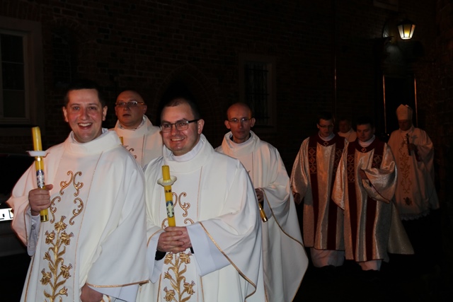 Biskupom, kapłanom i wiernym życzenia złożył ks. prał. Adam Modliński. – W tę świętą noc Zmartwychwstania Pańskiego życzę, aby Ten, który przeszedł ze śmierci do życia rozświetlał drogi naszej codzienności blaskiem prawdy, miłości i pokoju. Niech spotkanie z Jezusem Zmartwychwstałym będzie naszym zmartwychwstaniem, niech odmienia nasze życie, niech stanie się dla nas źródłem nadziei, a nadzieja siłą, abyśmy potrafili rozniecać płomień ufnej wiary w sercach naszych bliźnich, zwłaszcza tych, którzy żyją daleko od Boga, by jak najwięcej z nich doprowadzić do spotkania z Chrystusem – życzył proboszcz katedry.