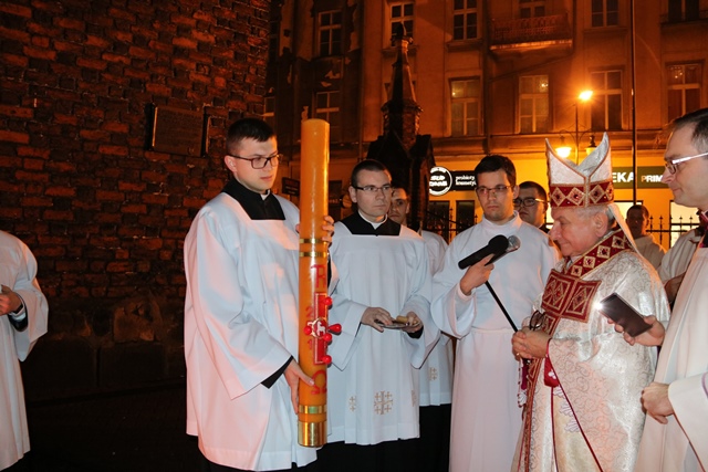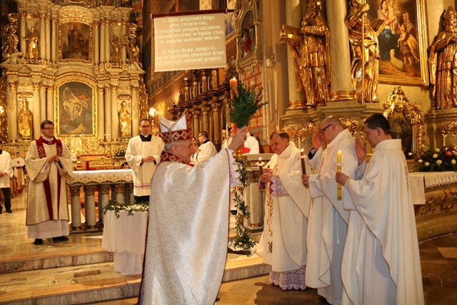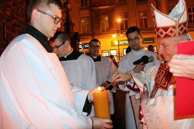 Dodał, że drugi żywioł, który uwydatnia liturgia Wigilii Paschalnej to woda. – My, jako dorośli, obmyci już dawno wodą chrztu św., czyli zanurzeni jeszcze w dzieciństwie w śmierć Chrystusa, winniśmy żyć dla Boga w jedności z Chrystusem Zmartwychwstałym – podkreślał bp Janiak.