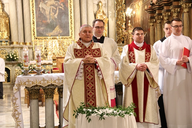 Wraz z biskupem kaliskim Edwardem Janiakiem modlili się: biskup pomocniczy diecezji kaliskiej Łukasz Buzun, proboszcz katedry ks. prał. Adam Modliński, kapłani pracujący w Kurii Diecezjalnej i katedrze.