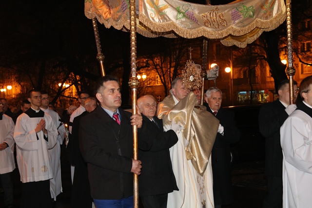 Liturgię zakończyła procesja rezurekcyjna z zapalonymi świecami ulicami Kalisza.