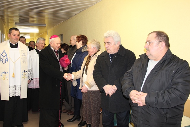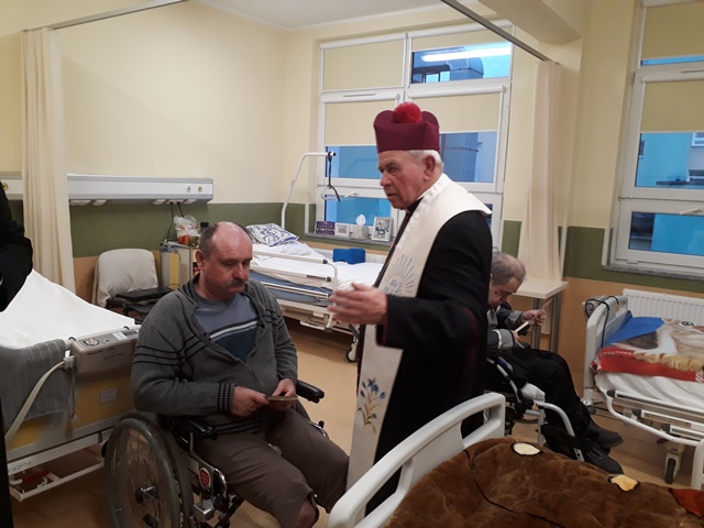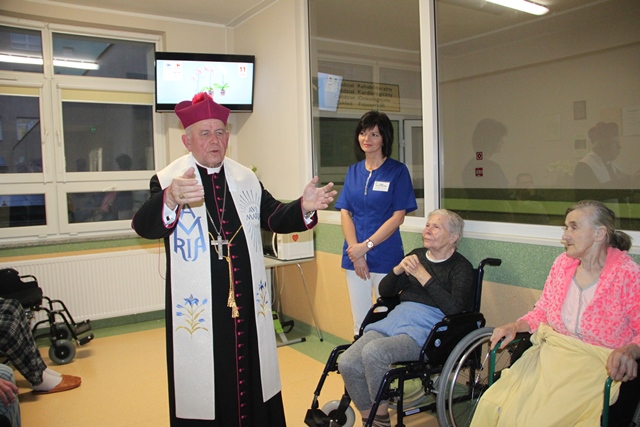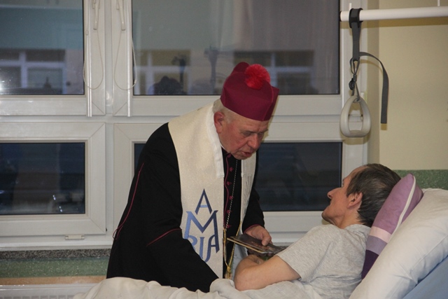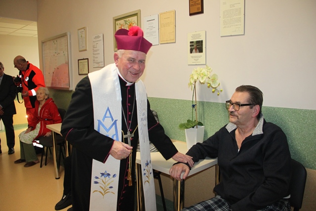 Po Mszy św. biskup odwiedził pacjentów oddziału paliatywnego.