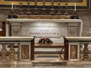 Po zakończeniu Mszy św. kapłani oraz korpus dyplomatyczny udali się do grobu św. Jana Pawła II, aby modlić się o pokój modlitwą ułożoną przez papieża Polaka, którą odczytał bp Robert Chrząszcz.