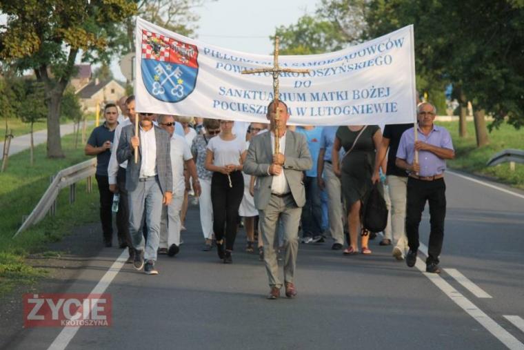 Autor/źródło: https://krotoszyn.naszemiasto.pl/wyruszyła XIV Pielgrzymka Samorządowców Powiatu Krotoszyńskiego. W pielgrzymce szli również policjanci, rodziny samorządowców oraz dziekan krotoszyński i proboszcz parafii p. w. św. Jana Chrzciciela w Krotoszynie, ks. prałat dr Aleksander Gendera. Przy bramie kościoła zebranych powitał i poświęcił kustosz Sanktuarium Matki Bożej Pocieszenia w Lutogniewie ks. kan. Łukasz Żurawski. Mszę świętą, o godzinie 19:00, odprawił ks. Michał Będzieszak. W koncelebrze stanęli: ks. kan. Łukasz Żurawski i ks. Mirosław Ziembiński. Sobotnie Uroczystości Odpustowe zakończyły się Apelem Jasnogórskim o godzinie 21:00.
