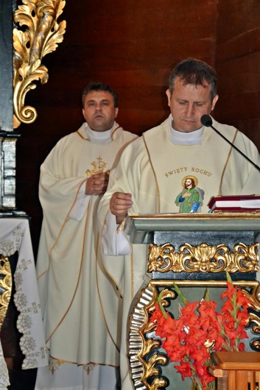 Dorośli parafianie i pielgrzymi przygotowują się do uroczystości odpustowych poprzez udział w mszach św. podczas których, głoszone są nauki. W tym roku głosi je ks. Sebastian Łagódka. W drugim dniu przygotowań duchowych do uroczystości odpustowych o godz. 18:00 odmówiony został różaniec. Dlaczego właśnie to modlitwa? Bo nasz niebieski patron był wielkim czcicielem Matki Bożej, a na naszym obrazie przedstawiony jest z różańcem zwisającym u pasa. Po różańcu odśpiewane zostały Godzinki o świętym Rochu Wyznawcy. O godz. 18:30 rozpoczęła się Eucharystia, której przewodniczył ks. Sebastian Łagódka, zaś współcelebransem był ks. kan. Krzysztof Ordziniak. Podczas tej mszy świętej wierni wysłuchali kolejnej konferencji. Przypomnijmy, w pierwszej ksiądz rekolekcjonista skoncentrował uwagę na chrzcie, który jest punktem wyjścia naszej wiary, zanurza nas w łasce Bożej. Zachęcał, byśmy rozbudzili w sobie pragnienia całkowitego zanurzenia naszego życia w Bogu. Ksiądz Sebastian zwrócił uwagę, że istnieje niebezpieczeństwo, że zamiast zanurzyć się w Bogu, przyjąć to co daje on nam każdego dnia, próbujemy stawia warunki. Podkreślił, że w dniu chrztu zostaliśmy naznaczeni znakiem krzyża, znak błogosławieństwa. To właśnie znak krzyża stał się myślą przewodnią czwartkowej konferencji. Kontynuując kaznodzieja nawiązał do znaku krzyża, którym naznaczony był święty Roch. Podkreślił, że krzyż był mocno obecny w jego życiu, także w postaci cierpienia. Kontynuując kapłan powiedział: „ Zostaliśmy naznaczeni krzyżem to znaczy, że nasza wiara nie może nigdy wyrzec się krzyża i nie może uciekać od krzyża”. Dzieląc się swoim spostrzeżeniem z kapłańskiej posługi zaakcentował, że ludzie czasami ulegają pokusie chrześcijaństwa bez krzyża. Polega ona na myśleniu, że jeśli będziemy chodzić do kościoła, modlić się, spowiadać regularnie to ominą nas w życiu wszystkie trudności. Gdy te trudności się pojawiają człowiek zaczyna robić Bogu wyrzuty, stawiać Bogu pytanie: dlaczego mi to robisz? Jest to efektem niewłaściwego pojmowania wiary. Nawiązując do słów Ewangelii podkreślił, że uczniowie Jezusa usłyszeli słowa o czekającym cierpieniu, ale nie usłyszeli o tym, że zmartwychwstanie. Kaznodzieja wskazał, że Jezus mówił o tym, że na drodze wiary jest krzyż. Zaakcentował, że nam potrzebny jest krzyż. Ksiądz Sebastian przywołał słowa papieża Franciszka: „Nie chciejcie Chrystusa bez krzyża. Chrystus bez krzyża nie jest zbawicielem jest tylko nauczycielem, jest tylko człowiekiem z dobrą prawdą”. Kontynuując ksiądz rekolekcjonista podkreślił, że Zbawicielem jest ten, który umiera na krzyżu i zmartwychwstaje. Zaznaczył, że krzyż bez Chrystusa jest czymś co nas przygniata. W dalszej części konferencji ks. Sebastian zaznaczył, że człowieka prędzej czy później doświadczy krzyża. Zwrócił uwagę, że gdy chcemy zrobić coś dobrego, wymaga to od nas wysiłku, trudu, czynienie zła przychodzi nam znacznie łatwiej. Podkreślił, że cierpienie, śmierć są efektem zawiści diabła.
