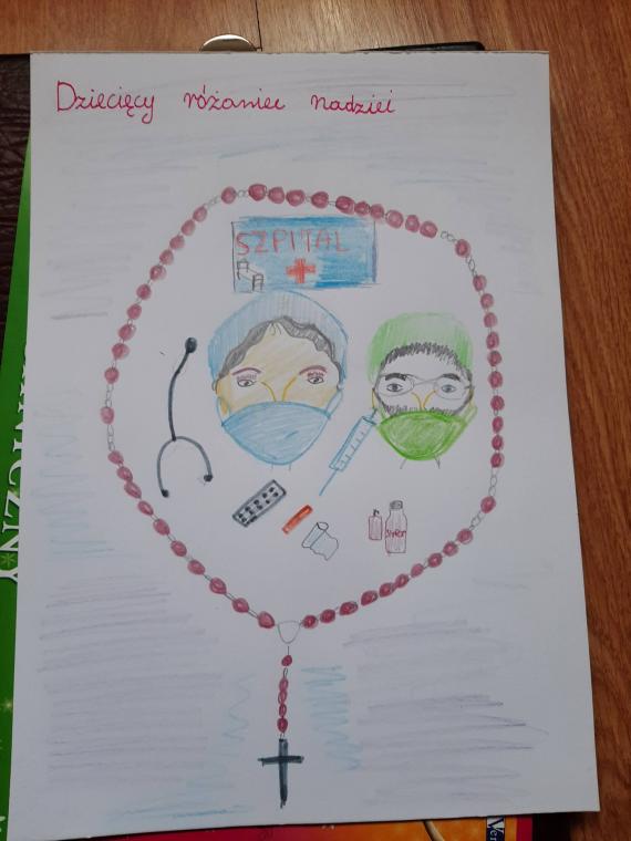 Dziecięcy Różaniec Nadziei – to inicjatywa zapoczątkowana przez dyrektora legnickiej Caritas ks. Roberta Serafina, która zrodziła się w czasie pandemii koronawirusa. Zaproponował, aby każde dziecko odmawiało dziesiątkę różańca świętego w intencji chorych i służby zdrowia. To nie wszystko. Poprosił, aby dzieci przygotowały rysunki dotyczące tej modlitwy, które sprawią z pewnością wiele radości personelowi oraz pacjentom 3 oddziału Zakładu Opiekuńczo-Leczniczego w Jeleniej Górze, gdzie leczą się osoby zakażone.