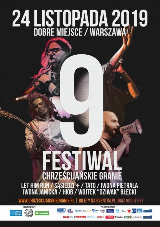 Festiwal Chrześcijańskie Granie 2019 po raz 9. w Warszawie zgromadzi fanów dobrej, chrześcijańskiej muzyki. W tym roku będzie to festiwal najlepszych debiutów. Wśród wykonawców laureaci konkursu Non Stop CCM (Bądź jak Jezus) - Sąsiedzi + oraz zespół LET HIM RUN. Wydarzenie poprowadzi HIOB a uroczyście otworzy bp Michał Janocha.