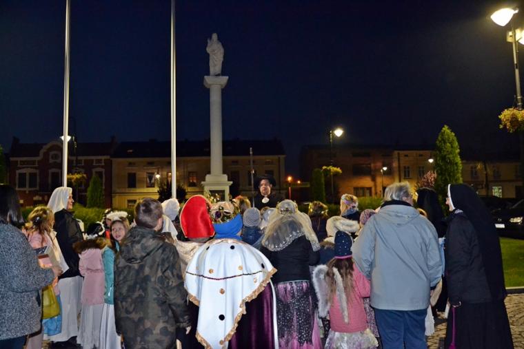 Potem nadszedł czas na Marsz Świętych ulicami miasteczka, przez rynek do Miejsko- Gminnego Ośrodka Kultury. Ze śpiewem na ustach „ Święci” przemierzali mikstackie uliczki dając świadectwo swej wiary. Korowód Świętych zatrzymał się na Rynku przy figurze Najświętszego Serca Pana Jezusa. Tu ks. wikariusz zapytał dzieci o atrybuty świętego Rocha. Przypomniał, że patronuje on naszemu miastu i wraz z uczestnikami Marszu Świętych pomodlił się w intencji jego mieszkańców. Potem korowód wyruszył już do  MGOK- u, gdzie  odbył się  II Mikstacki Bal Wszystkich Świętych.