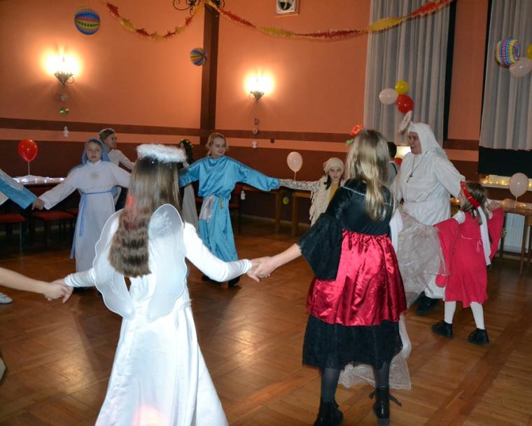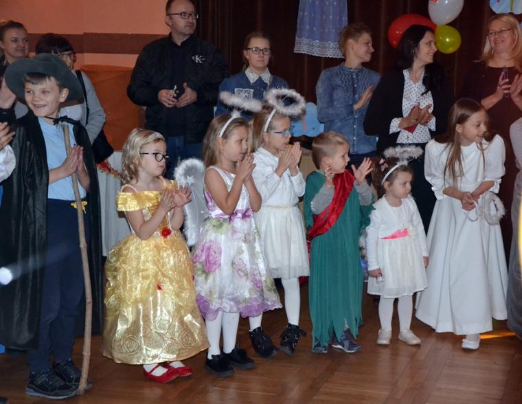 Nie zabrakło konkursów z nagrodami i słodkości. Zapewne uczestnicy Marszu i Balu Wszystkich Świętych na długo zapamiętają ten październikowy wieczór. Ponadto pokazali, że każdy może być Świętym, jeśli tylko chce … Wcielając się w postacie różnych Świętych pokazali jak różne są drogi prowadzące do świętości. Jeszcze jedna refleksja. W przededniu    uroczystości Wszystkich Świętych, gdy tak wiele osób przemieszczało się pospiesznie ulicami miasteczka robiąc jeszcze zakupy do ich uszu  popłynęło przesłanie: „możesz być świętym, jeśli chcesz”. Być może stało się one impulsem do postawienia pytania: czy naprawdę dążę do świętości?  Czy  chcę być świętym? Dla dzieci bal był zapewne okazją do poszukania takiego „ swojego” świętego, do zaprzyjaźnienia się z nim i do przeżycia wieczoru w duchu Bożej radości.