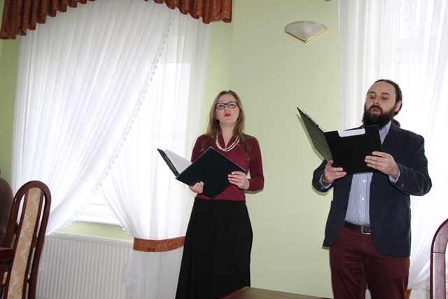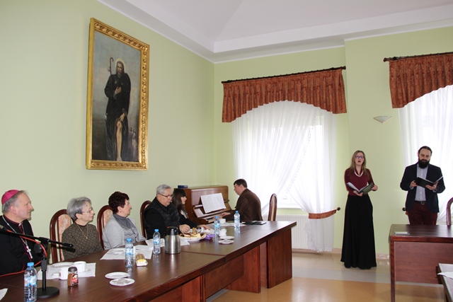 Spotkanie uświetnił program słowno-muzyczny. Fragmenty poezji Jana Pawła II recytowała aktorka kaliskiego teatru Małgorzata Kałędkiewicz-Pawłowska. Pieśni wykonali studentka i absolwent Uniwersytetu Muzycznego Fryderyka Chopina w Białymstoku – Małgorzata Piotrowska (sopran) i Maciej Falkiewicz (baryton) przy akompaniamencie kompozytora, dyrygenta, absolwenta Akademii Muzycznej w Katowicach dr. Krzysztofa Niegowskiego.