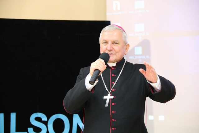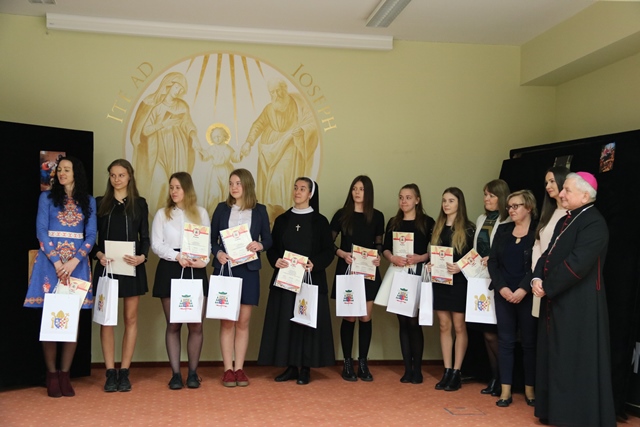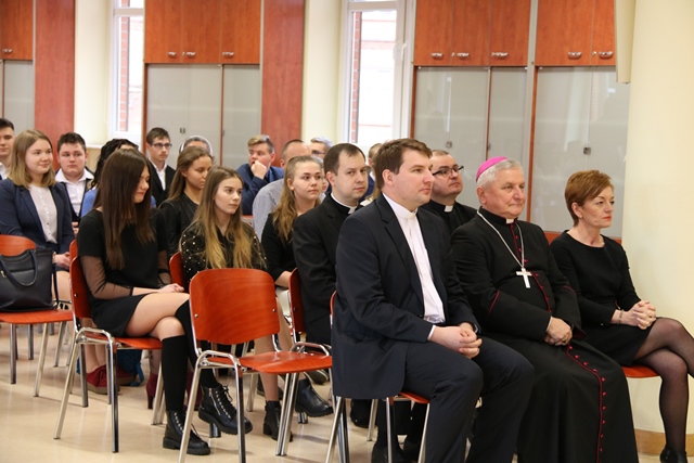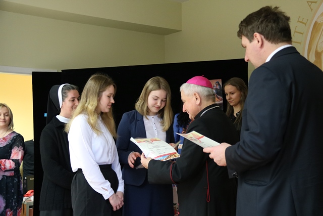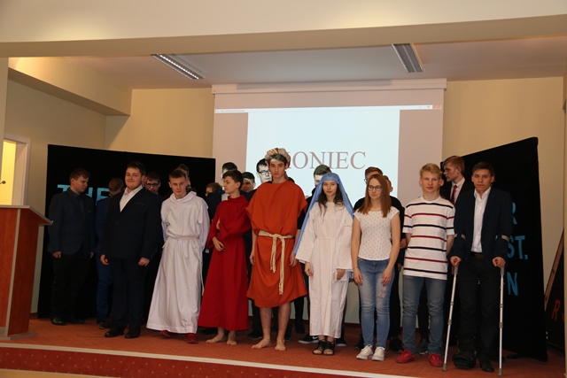 Biskup kaliski gratulował laureatom konkursu i uczniom zaangażowanym w spektakl. Złożył także życzenia z okazji zbliżających się świąt Zmartwychwstania Pańskiego. – Gdyby nie było zmartwychwstania próżna byłaby nasza wiara. Wszyscy wierzymy, że kiedyś spotkamy się w niebie, ale trzeba być dobrym człowiekiem, żeby na to niebo zapracować – mówił bp Janiak, który wyraził nadzieję, że uczniowie w przyszłości będą wizytówką tej szkoły.