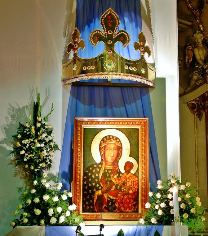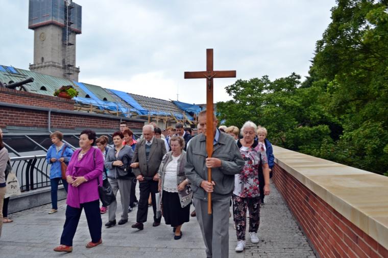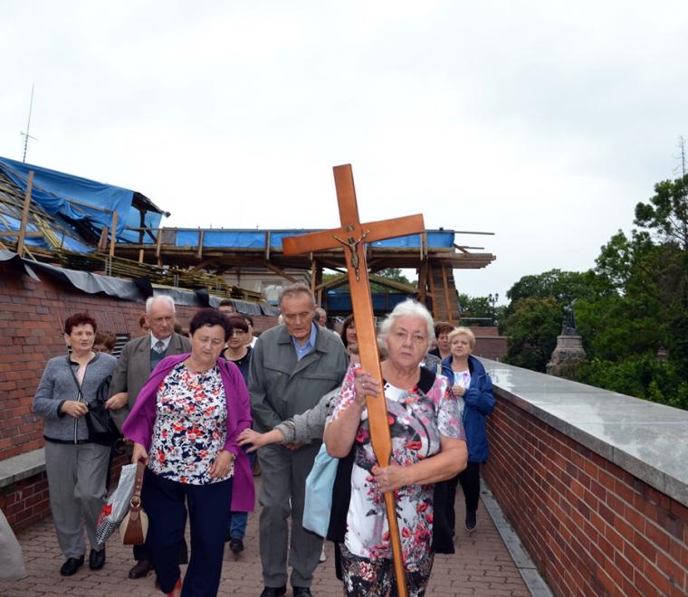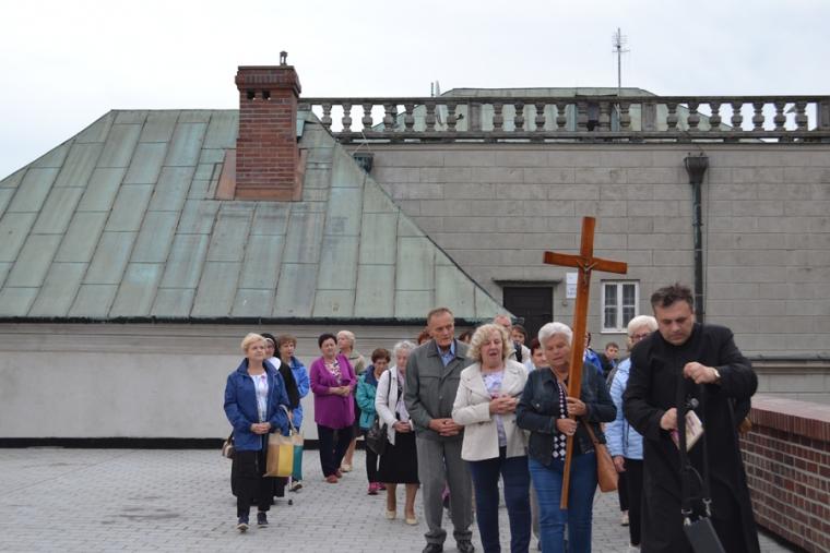 O godz. 16:00 uczestniczyliśmy w odprawianym przed obliczem Czarnej Madonny nabożeństwie różańcowym, podczas którego rozważane były tajemnice światła. Podczas pielgrzymki nie mogło zabraknąć Eucharystii. Uczestniczyliśmy w niej w Kaplicy Cudownego Obrazu, a ks. proboszcz sprawował ją w naszych intencjach. Po Mszy Świętej udaliśmy się na wały, by odprawić drogę krzyżową. Rozważania poszczególnych stacji koncentrowały się na problemie starości. Stanowiły zachętę do przeżywania tego okresu w duchu zaufania i zawierzenia Panu Bogu. Między poszczególnymi stacjami odmawialiśmy Koronkę do Miłosierdzia Bożego. Każdy kto czuł taką potrzebę mógł między stacjami przejąć krzyż. Po zakończonej drodze krzyżowej był czas na osobistą modlitwę i spotkanie z Matką i Jej Synem. Wiele osób w tym czasie modliło się w Kaplicy Cudownego Obrazu, ale także nawiedziło i zatrzymało się w Kaplicy Adoracji. Opiekun duchowy naszej pielgrzymki zachęcał nas, byśmy w tym pielgrzymkowym dniu rozważyli wszystkie tajemnice różańca. Zapewne był to czas, gdy wielu z nas kontemplowało tajemnice bolesne, powierzając Maryi także trudne, bolesne sprawy swoje i swoich bliskich. O godz. 19:00 uczestniczyliśmy w nabożeństwie czerwcowym. W słowie skierowanym do wiernych przewodniczący nabożeństwu Ojciec Paulin zwrócił uwagę na wezwanie Litanii do Najświętszego Serca Jezusowego zawarte w słowach: Serce Jezusa hojne dla wszystkich, którzy Cię wzywają. Nawiązał do kultu Serca Jezusowego. Zwrócił uwagę na obietnice dane Małgorzacie Marii Alacoque dla tych, którzy oddają cześć Jego Boskiemu Sercu. Zachęcał, by w naszych domach znalazło się miejsce dla krzyża, obrazu Jezusa, Matki Bożej, świętych. Gdy w Mikstacie rozległ się dźwięk dzwonów, przypominających o tym, że mamy być, pamiętać, czuwać, my wpatrując się w zatroskane oczy Czarnej Madonny uczestniczyliśmy w Apelu Jasnogórskim. Po Apelu wyruszyliśmy w drogę powrotną, podczas której odmówiliśmy tajemnice chwalebne różańca. To był piękny dzień...