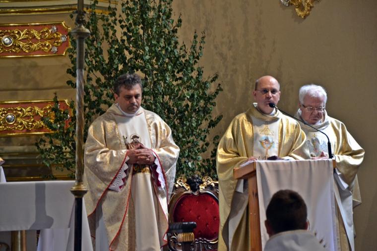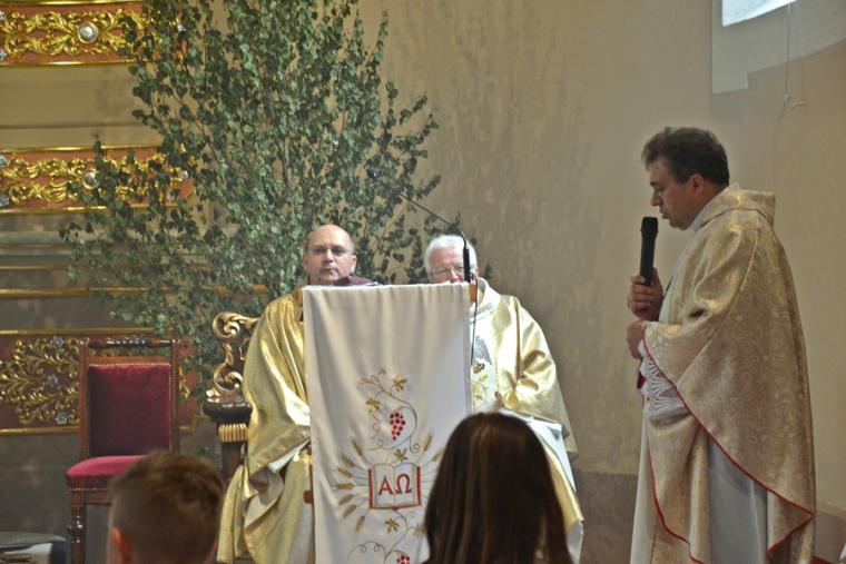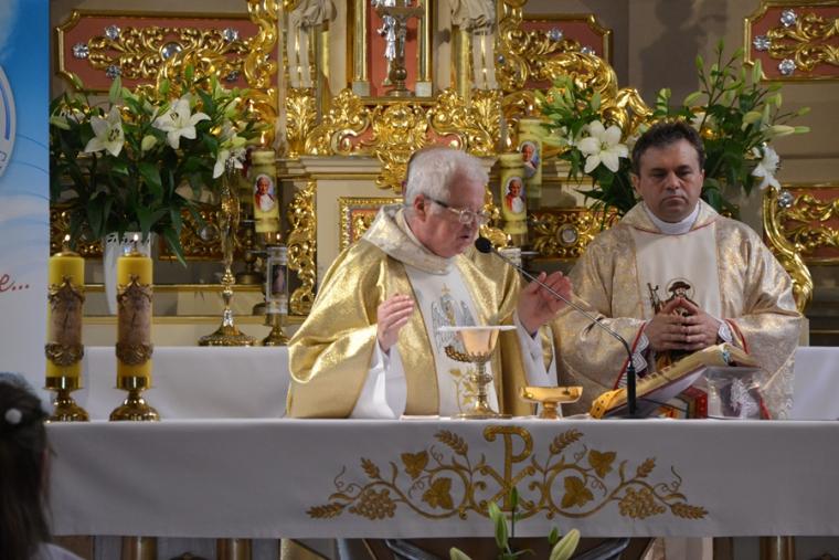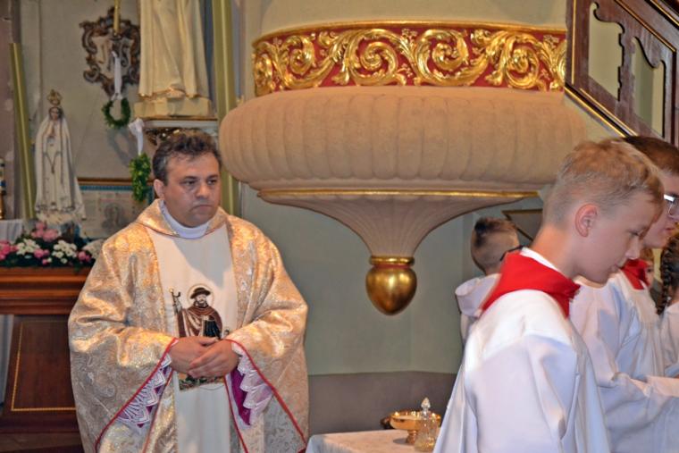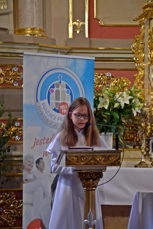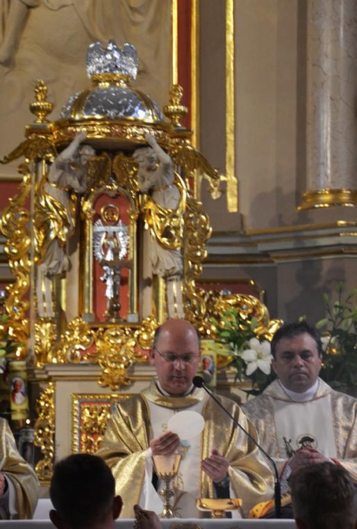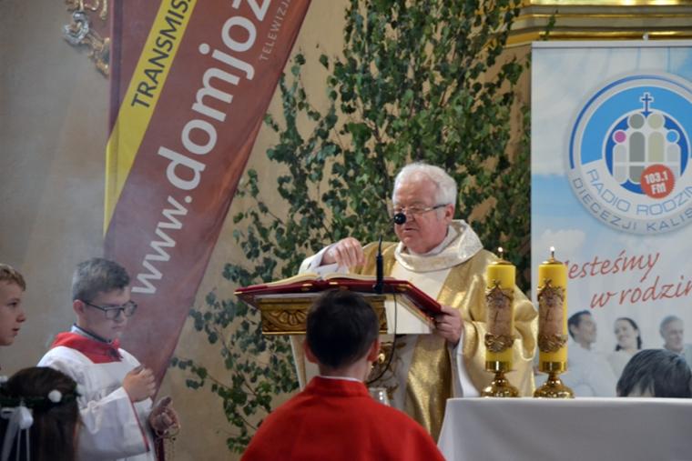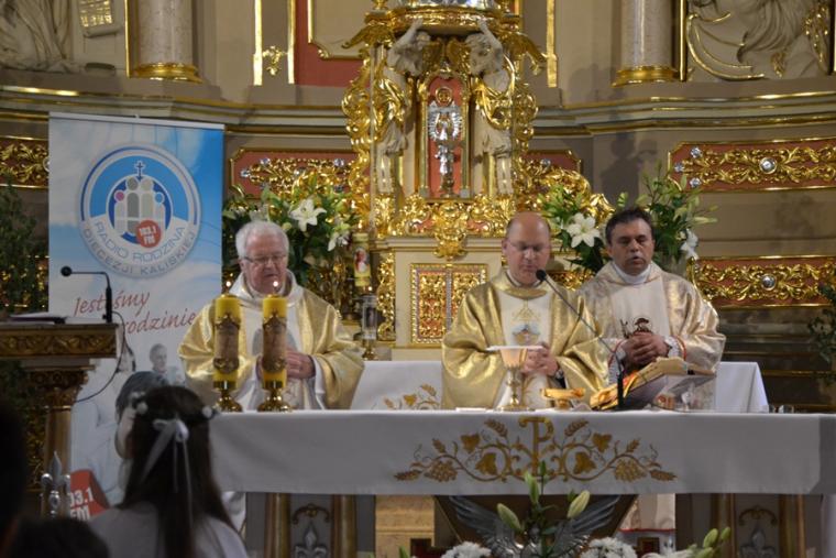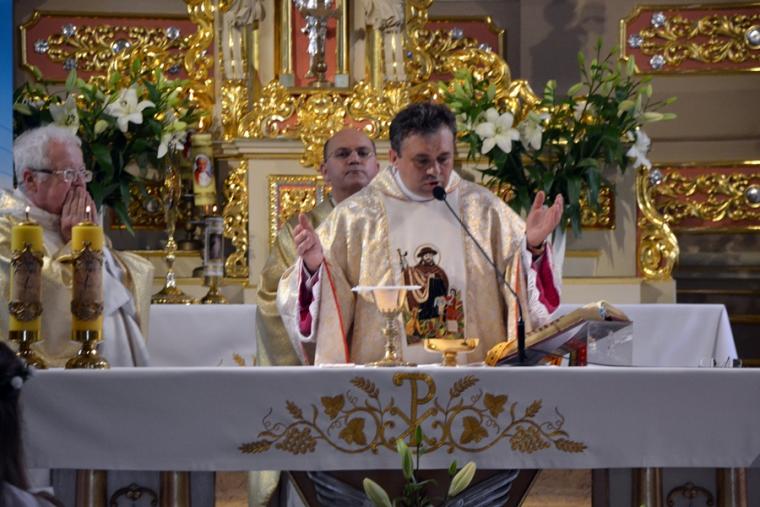 Bogata w wydarzenia była w mikstackiej parafii niedziela 16 czerwca . W tym dniu w całym Kościele obchodzona była uroczystość Trójcy Przenajświętszej. Dla naszej wspólnoty był to dzień wyjątkowy, dzień odpustu, bo od wieków parafii patronuje Trójca Święta. Uroczystej sumie odpustowej odprawionej o godz. 11:00 przewodniczył w tym roku ks. Andrzej Wojciechowski, proboszcz parafii pw. Świętego Michała Archanioła w Czempiniu. W czasie sumy odpustowej zakończenie „ Białego Tygodnia” przeżywały dzieci, które w uroczystość Zesłania Ducha Świętego pierwszy raz w sposób pełny uczestniczyły we mszy świętej, natomiast uczniowie klasy czwartej wspominali rocznicę swojej I Komunii Świętej. Wraz z księdzem Andrzejem Wojciechowskim, stanęli ks. kan. Krzysztof Ordziniak oraz ks. kan. Zbigniew Mielcarek, który czterdzieści dwa lata temu w uroczystość Trójcy Świętej sprawował w mikstackiej farze mszę świętą prymicyjną. Na początku mszy świętej ksiądz proboszcz przedstawił przewodniczącego koncelebrze księdza Andrzeja. Podkreślił, że jest następcą ks. Franciszka Ksawerego Ruszczyńskiego w Czempiniu, w parafii do której posłany został budowniczy naszej fary w dwa lata po jej konsekracji. W Czempiniu w parafii pw. Świętego Michała Archanioła sprawował posługę w latach 1920-1961. Ks. kan. Krzysztof zaznaczył, że ks. Andrzej Wojciechowski jest kolegą kursowym syna naszej parafii ks. Michała, a więc niedawno obchodził 25-lecie kapłaństwa. Homilię podczas uroczystej sumy wygłosił przewodniczący koncelebrze ks. Andrzej. Można w niej wyodrębnić dwie części. W pierwszej kaznodzieja nawiązując do słów Ewangelii zachęcał byśmy dziękowali Bogu za Bożego Ducha, który przypomina nam prawdę. Podkreślił, że ta prawda jest przekazywana od dwóch tysięcy lat, głoszona w naszych parafiach i prowadzi nas do zbawienia. Ks. Andrzej zaakcentował, że w uroczystość Trójcy Przenajświętszej dziękujemy za Boga Ojca, który stworzył świat, za Syna Bożego, który odkupił świat, wybawił nas od śmierci i grzechu, dziękujemy za Ducha Świętego, który nas prowadzi, oświeca nas, byśmy nie zeszli z Bożych dróg. Kaznodzieja nawiązał do medalionu Trójcy Przenajświętszej znajdującego się w kościele pw. Świętego Michała Archanioła w Czempiniu podkreślił, że cała Trójca Święta przedstawiona jest jako wspólne działanie Boga dla naszego zbawienia.