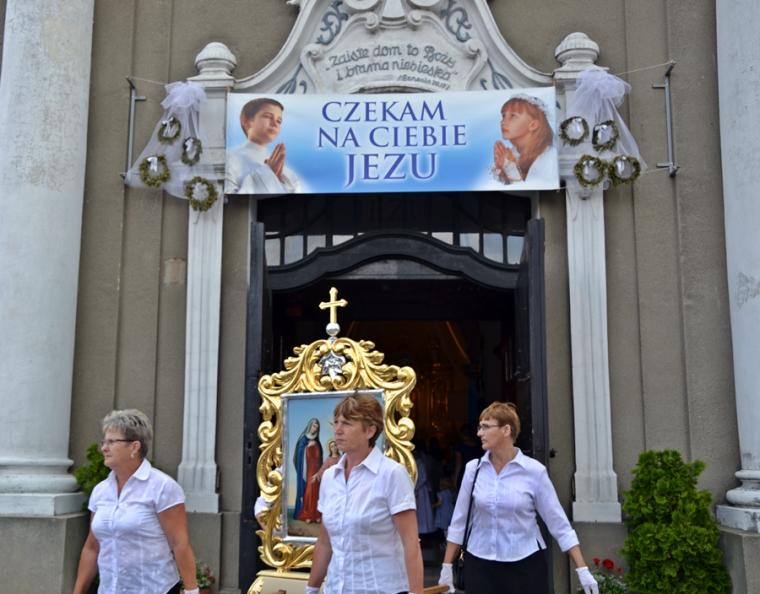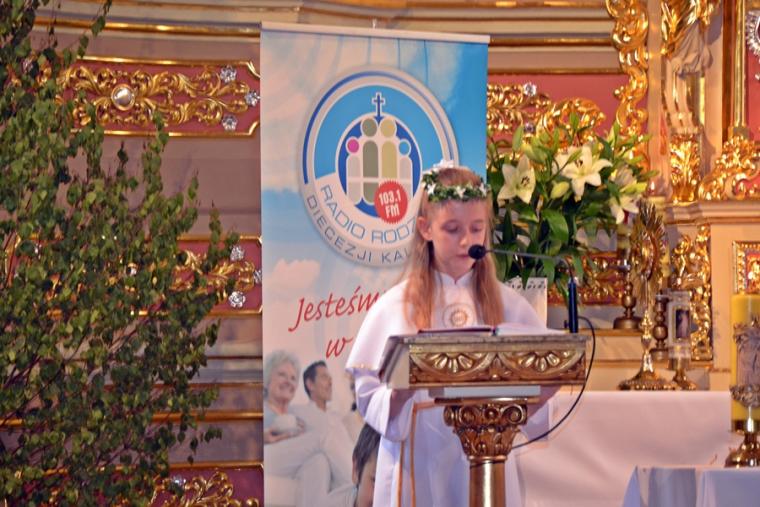 W procesji z darami dzieci przyniosły chleb wodę i wino oraz hostie. Po zakończeniu Mszy Świętej został wystawiony Najświętszy Sakrament i odmówiona Litania do Trójcy Przenajświętszej, a następnie wyruszyliśmy z procesją wokoło kościoła. Po błogosławieństwie udzielonym Najświętszym Sakramentem licznie zebranym w mikstackim wieczerniku wiernym wybrzmiała pieśń „Boże coś Polskę…”.