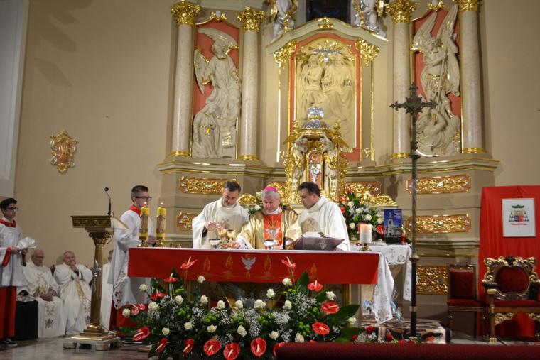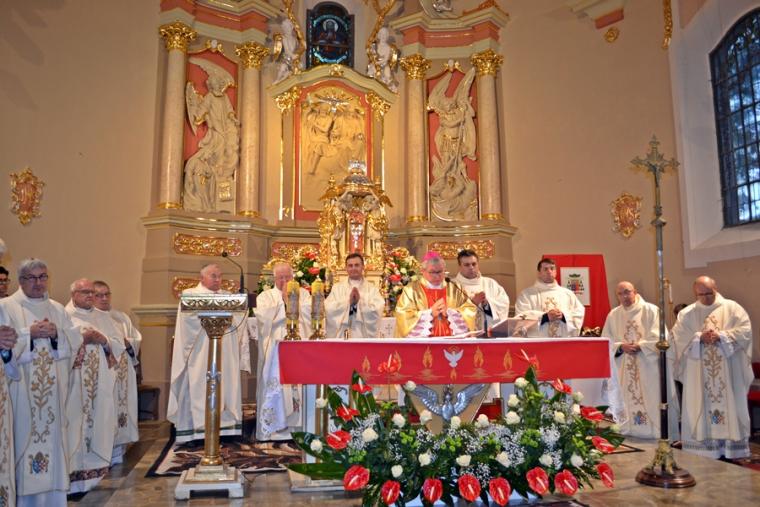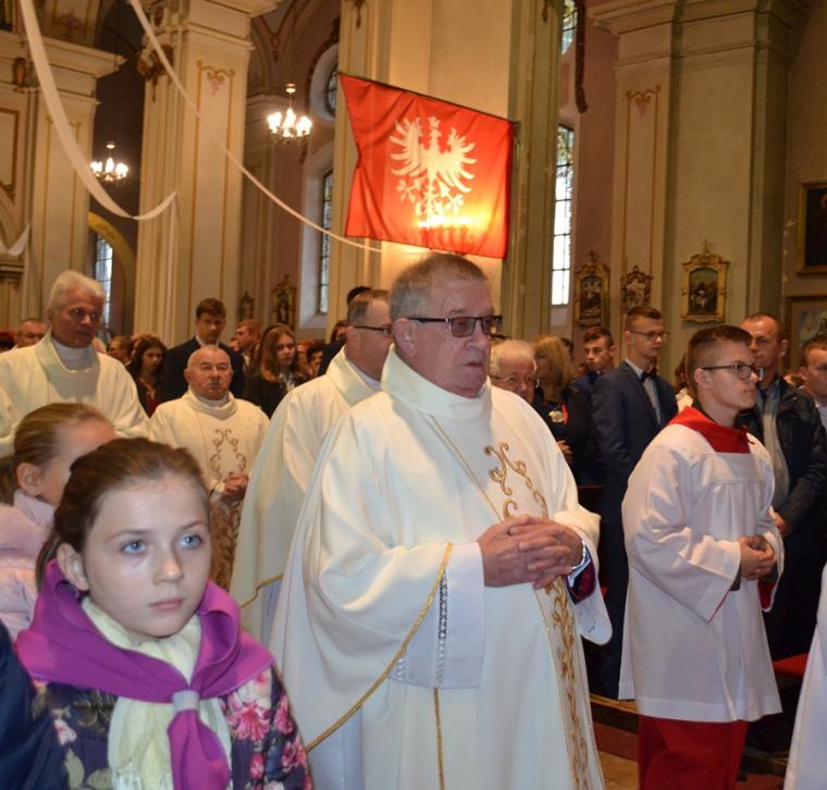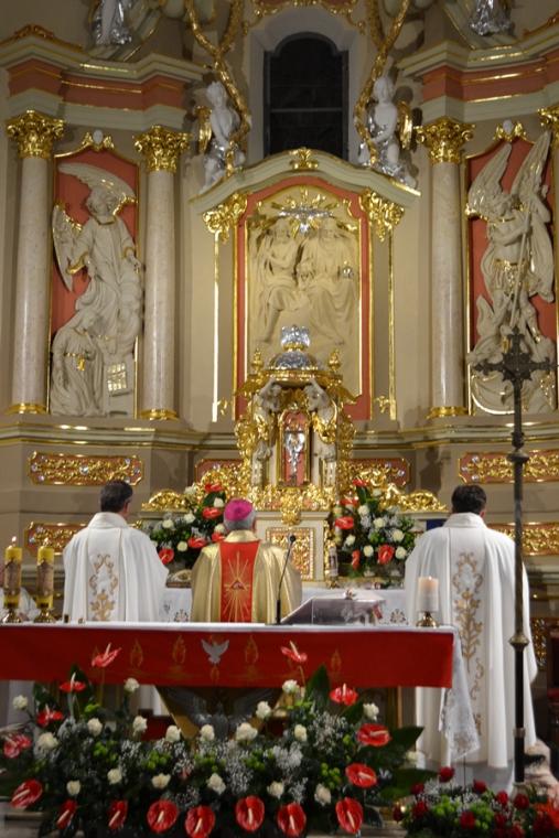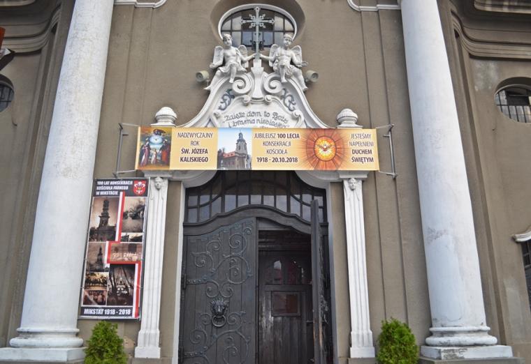 20-go października mikstacka wspólnota parafialna przeżywała jubileusz 100- lecia konsekracji kościoła pw. Świętej Trójcy. Zapewne na zawsze pozostanie w sercach i pamięci uczestników ta piękna uroczystość, której przewodniczył ks. bp Edward Janiak Ordynariusz Diecezji Kaliskiej. Uroczysta Eucharystia rozpoczęła się w tej konsekrowanej przez abpa Edmunda Dalbora dokładnie przed wiekiem świątyni o godz. 17:00. Bardzo piękną oprawę miał przyjazd ks. Bpa Ordynariusza do Mikstatu. Był on odtworzeniem wydarzenia sprzed stu lat. Na przybywającego Dostojnego Gościa przed torami kolejowymi oczekiwali motocykliści, którzy eskortowali jego samochód do granic Mikstatu. Na granicy Mikstat ks. biskup przesiadł się w karocę zaprzężoną w cztery konie, którą zajechał przed kościół.  Taką karocą przybył przed stu laty na uroczystość konsekracji kościoła abp Edmund Dalbor. Po rozpoczęciu Eucharystii słowa powitania skierował do księdza biskupa gospodarz miejsca ks. proboszcz Krzysztof  Ordziniak. Przypomniał także okoliczności budowy świątyni, przywołał opis konsekracji sprzed wieku, a także wspomniał kapłanów w niej  posługujących. Ksiądz kanonik przywitał zaproszonych gości, przedstawicieli władz samorządowych oraz licznie zgromadzoną rzeszę parafian. W  ostatnich trzech latach w świątyni trwały prace renowacyjne w prezbiterium. Zakończyły się kilka dni przed jubileuszowymi uroczystościami. Ksiądz proboszcz zwrócił się do ks. biskupa z prośbą o poświęcenie odnowionego prezbiterium, tablicy upamiętniającej obchody 100-lecia konsekracji kościoła oraz 25-rocznicy erygowania Diecezji Kaliskiej, a także krzyża misyjnego znajdującego się przy kościele. Przebywając w Mikstacie abp Edmund Dalbor udzielił sakramentu bierzmowania 650. osobom. Podczas sobotniej uroczystości przyjęło go z rąk ks. bpa Edwarda Janiak pięćdziesięciu młodych parafian. O jego udzielenie poprosili ks. biskupa przedstawicie rodziców kandydatów do bierzmowania. Po specjalnej modlitwie ks. Biskup poświęcił pięknie odnowione prezbiterium, tablice pamiątkowe i nowy, wykonany po sześćdziesięciu latach krzyż misyjny. Na początku homilii ks. biskup zaznaczył, że jest w mikstackiej parafii już po raz czwarty, chociaż jak przyznał są parafie, których nie był ani razu. Kontynuując powiedział: „Zawsze Mikstat kojarzył mi się z tradycją, że tutaj jest takie szczególne miejsce gdzie ludzie mają poczucie więzi, z miastem, z tym miejscem”. Powołując się na dokumenty historyczne wyjaśnił, dlaczego Mikstat nazywany jest czasami „małym Paryżem”. Podkreślił także, że już w dawnych dokumentach zapisano, że mieszkańcy troszczą się o swój kościół. Nawiązując do trwających w świątyni prac renowacyjnych celebrans powiedział: „Chciałbym bardzo serdecznie podziękować na ręce księdza proboszcza za troskę o świątynię. Tutaj jest wiele elementów, które się razem spotkały i szanse tego projektu unijnego i urzędu marszałkowskiego i ministra i właściwie wasz udział jest bardzo istotny. Nieraz nawet jak się coś w prezencie dostaje  nie ceni się, ale jak jest w tym udział tzw. ten grosz wdowi to  jest bardzo cenne”. Kontynuują homilię ks. biskup podziękował konserwatorom, mecenasom sztuki za troskę o to, by świątynia stawała się coraz piękniejsza. Podkreślił,  że wygląd świątyni świadczy o parafianach, o ich wierze, wdzięczności wobec Pana Boga i ofiarności, ale dodał: „Pan Bóg chce od nas czegoś więcej,  On chce mieszkać w naszych sercach. To my mamy być tym tabernakulum”.