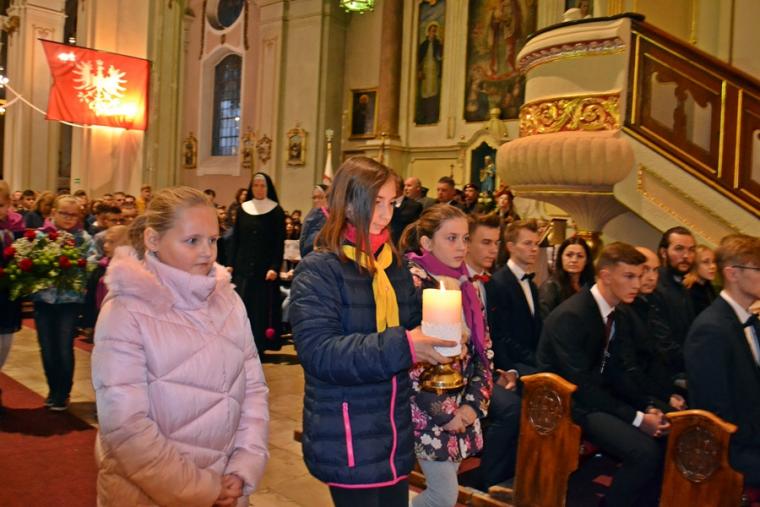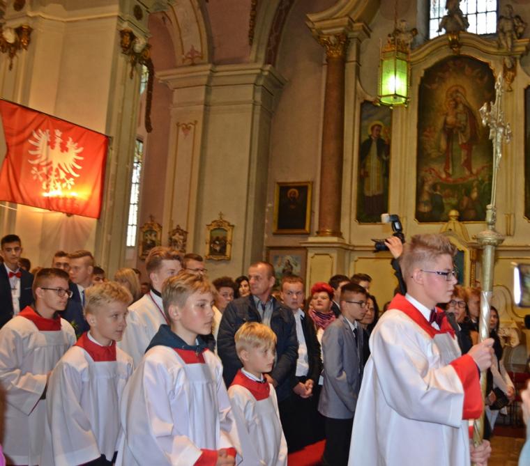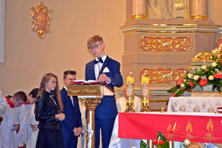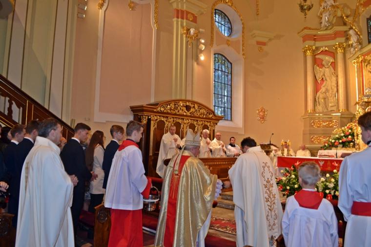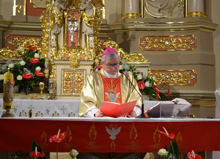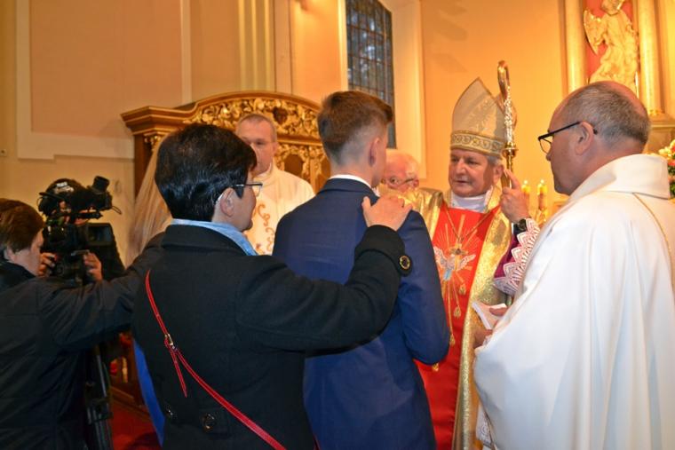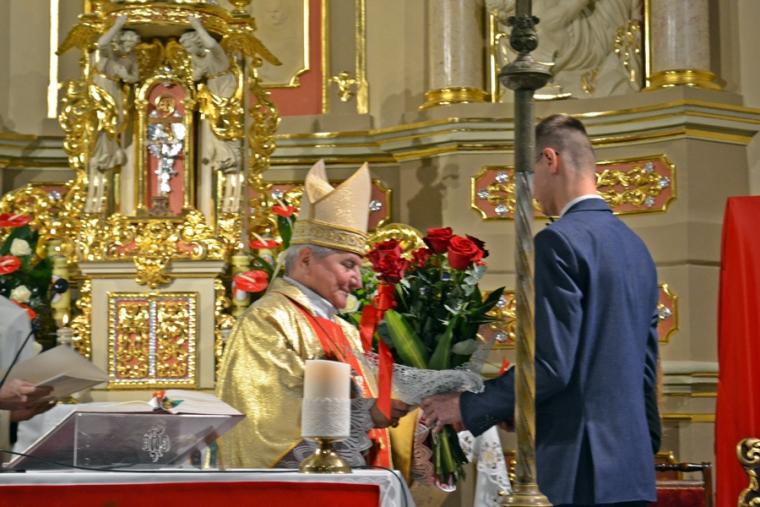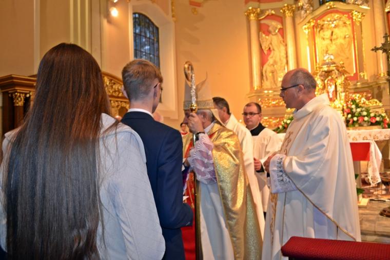 Druga część homilii skierowana była przede wszystkim do kandydatów do bierzmowania. Podkreślił, że sam moment bierzmowania trwa, krótko, jednak pozostawia trwały ślad w duszy człowieka. Celebrans dodał: „Choć ten sakrament przyjmuje się raz w życiu, On Duch Święty was już nigdy nie opuści. Głosem waszego sumienia będzie wam podpowiadał co należy czynić, jak należy postępować, ale Pan Bóg  nie zniewala człowieka. Jeżeli ktoś chce ma wolną wolę do tego stopnia jest człowiek wolny, że może odwrócić się od Pana Boga, pogardzić Bogiem”. Nawiązując do słów Ewangelii Biskup Ordynariusz przekonywał  młodych, że jeśli przyznają się do Jezusa, Ten nigdy ich nie opuści. Pan Bóg potrzebuje ludzi. Jesteście potrzebni Kościołowi przekonywał młodych hierarcha,  podkreślając, że świat potrzebuje świadków wiary. Podkreślił, że takimi świadkami był bł. ks. Jerzy Popiełuszko, ale i patron dnia św. Jan Kanty. Kontynuując ks. biskup podkreślił, że jest wiele dróg prowadzących do Boga. Zaznaczył jednak, że aby życie człowieka wydało dobre owoce potrzebni są świadkowie wiary , ale także jedność oddziaływań Kościoła, rodziny i szkoły. Sakramenty, objawienie przekazana na kartach Pisma Świętego to jak wskazywał celebrans pewna droga do Boga, dodając jednocześnie,  „ale jest jeszcze trzecia droga sprawdzona, która prowadzi do Boga, to jest drugi człowiek”. Wskazywał młodym, że należy tak iść przez  życie, żeby nikt przeze mnie nie płakał, żeby być otwartym, pomocnym, bez względu na światopogląd, różnice, język, bo każdy człowiek stworzony jest na obraz i podobieństwo Boże. I chciałbym, żebyście może inne rzeczy zapomnicie z tej uroczystości, ale tego nie zapominajcie, że nie ma przypadkowych spotkań, że każdy człowiek jest dla mnie wezwaniem”. Następnie ks. biskup zaapelował do rodziców, by byli świadkami wiary dla swoich dzieci. Podkreślił znaczenie dziadków w formowaniu religijności wnuków. Kończąc celebrans podziękował wszystkim, którzy w   jakikolwiek sposób przyczynili się do zorganizowania tak  pięknej uroczystości.
