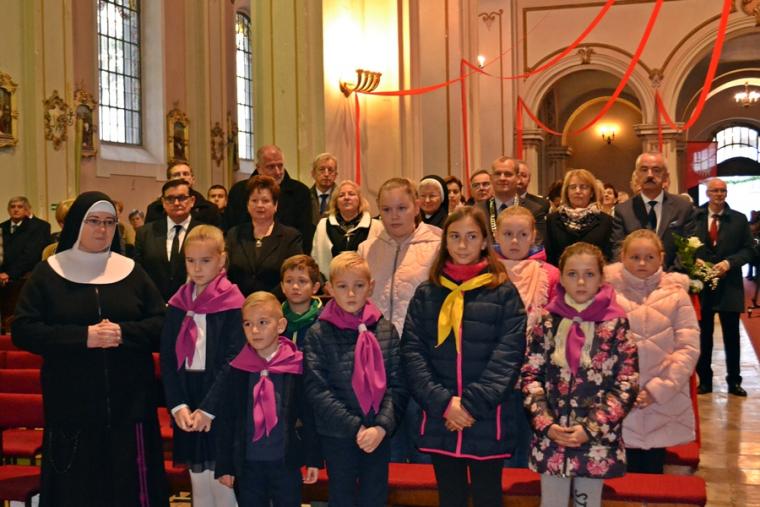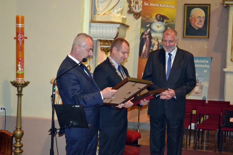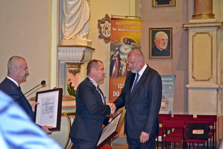Po zakończonej Eucharystii odbyło się wręczenie  tytułu: Zasłużony dla Miasta i Gminy Mikstat- dr. Rafałowi Dutkiewiczowi. Laudacje wygłosił Burmistrz Miasta i Gminy pan Henryk Zieliński, zaś treść uchwały o nadaniu tytułu Zasłużonego dla Miasta i Gminy , przewodniczący Rady Miasta i Gminy Łukasz Dybul. Po wręczeniu dyplomu  i repliki aktu urodzenia głos zabrał uhonorowany, dodajmy pochodzący z Mikstatu dr Rafał Dutkiewicz. Uroczystość w kościele zakończyła się odśpiewaniem Roty. Potem był czas dalszego radosnego spotkania przy kawie, słodkościach i  dźwiękach orkiestry parafialnej.