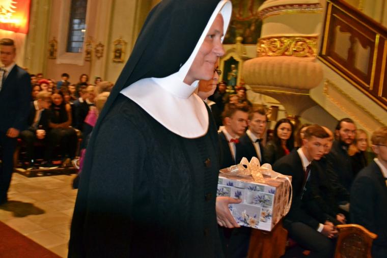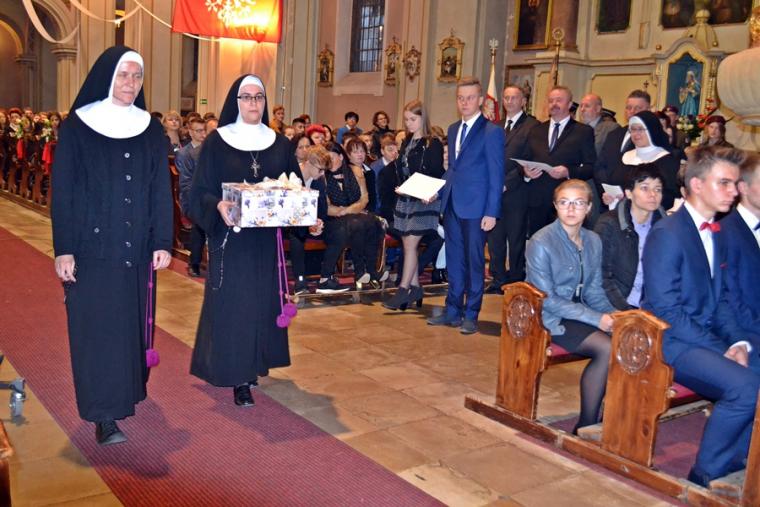 W procesji z darami bierzmowana młodzież wraz ze swoimi rodzicami złożyła ofiarę na renowację  świątyni. Ponadto w procesji z darami przyniesiono m.in.: kwiaty, ornaty, świece, ofiarę na meble do zakrystii, patenę i bieliznę kielichową, chleb i wino.