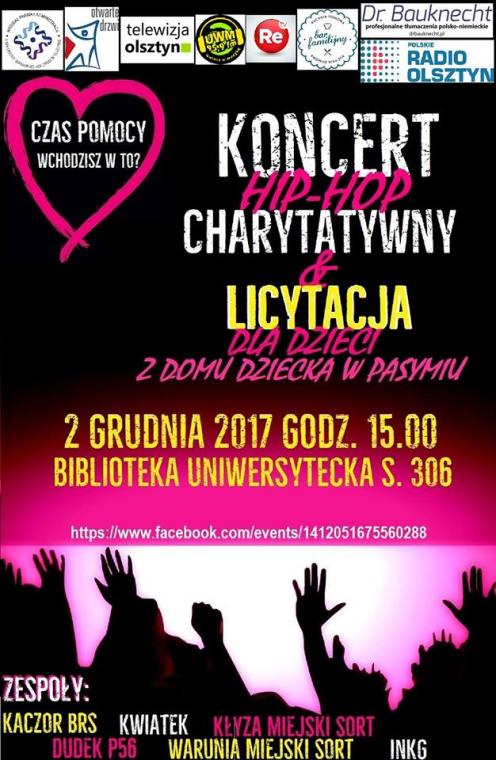 Na licytację przedmioty przeznaczyły osoby ze środowiska naukowego,zawodowego i artystycznego.Przedstawiciele władz państwowych oraz lokalnych.Wiele osób przybyło,by posłuchać hip-hopu,ale przede wszystkim wesprzeć tych,którzy dzisiaj tego najbardziej potrzebują.Wydarzenie odbyło się pod honorowym patronatem Jego Magnificencji Pana Rektora Uniwersytetu Warmińsko - Mazurskiego - Ryszarda Góreckiego.Każdy z nas może jeszcze pomóc! Niedługo święta,a więc warto zrobić miłą niespodziankę dzieciakom. Więcej informacji na ten temat tutaj