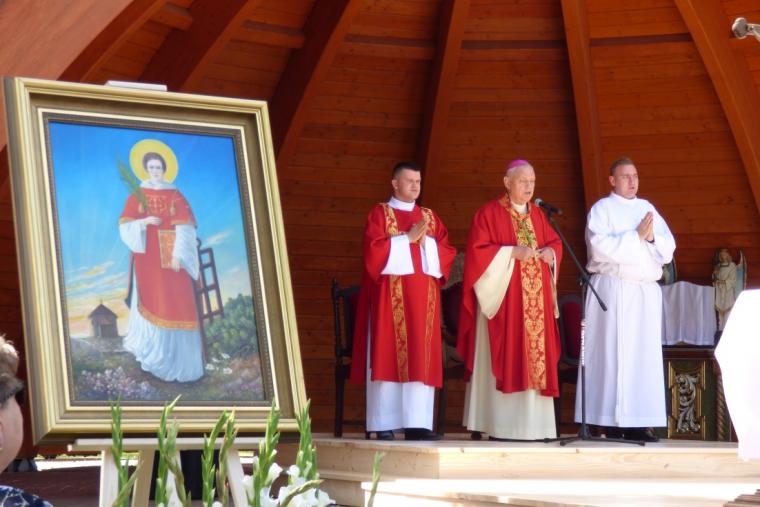 Biskup legnicki Zbigniewa Kiernikowskiego poświęcił także obraz św. Wawrzyńca, namalowany przez miejscowego artystę Janusza Motylskiego. – Jest to jedyne taki przedstawienie św. Wawrzyńca na tle Śnieżki i karkonoskiej przyrody – zaznaczył ks. kan. Zenon Stoń, proboszcz parafii w Karpaczu.