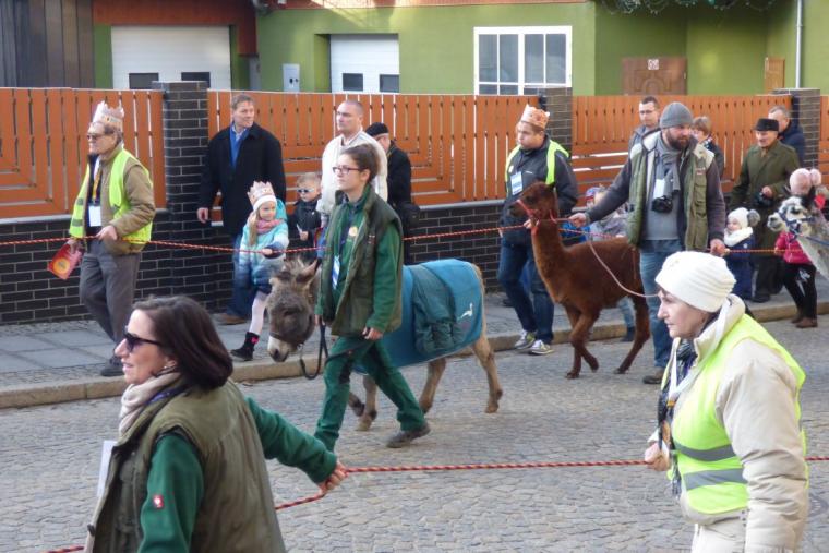 Wielkim zainteresowaniem dzieci, cieszyły się uczestniczące w Orszaku zwierzęta z ZOO z Görlitz: osiołki, lamy oraz „tańczący” wielbłąd, który nie mogąc wytrzymać długo w bezruchu, wraz ze swym opiekunem kreślił 360 stopniowe koła.